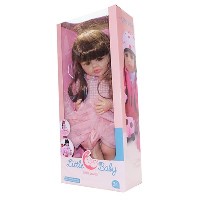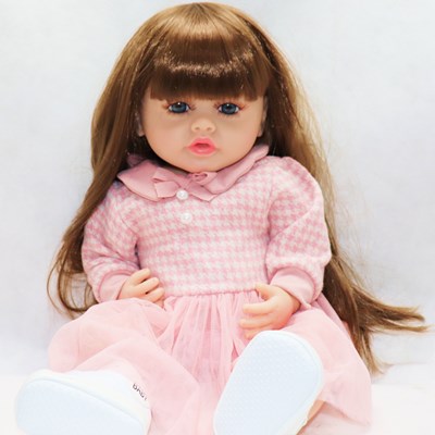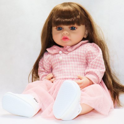 معرفی عروسک سیلیکونی دختر بچه 50 سانتی سخنگو با پیراهن صورتی