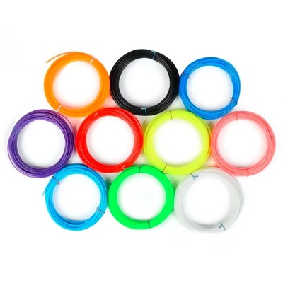 مجموعه ده عددی فیلامنتهای قلم طراحی سهبعدی، محصولی کارآمد و متنوع است که از جنس PLA مرغوب تولید شده و طول هر رشته آن ۵ متر میباشد.