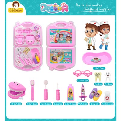 اسباببازی دندانپزشکی کودک شامل سیزده ابزار شبیهسازی شده تخصصی دندانپزشکی از جمله دریل، سرنگ، آینه و دندان مصنوعی میباشد. این کیت مجهز به یک کیف دستی جهت حمل و نقل آسان بوده و به طور خاص برای ایفای نقش پزشک و دندانپزشک طراحی گردیده است. استفاده از این مجموعه به طور مؤثری خلاقیت کودک را تقویت نموده و وی را با تجهیزات پزشکی آشنا میسازد. کلیه اجزای این ست، از پلاستیک مرغوب درجه یک ABS تولید شده و برای گروه سنی بالای سه سال مناسب تشخیص داده شده است.