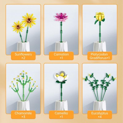 جعبه‌ای به ابعاد 21×36 سانتی‌متر که درونش دنیایی از خلق و هنر نهفته است. با 479 قطعه لگویی از پلاستیک ABS درجه‌یک، می‌توانید باغ کوچکی از گل‌های رنگارنگ را با دستان خود بسازید. در این مجموعه،4 شاخه اکالیپتوس، 3 گل بابونه، 2 آفتابگردان، 1 پلاتیکودن، 1 میخک و 1 کاملیا قرار دارد تا ترکیبی رؤیایی از رنگ و طراوت بسازد.