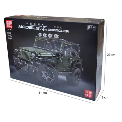 این جیپ لگویی با دربهای قابل باز شدن، سیستم دنده و گیربکس شبیهسازیشده مانند یک خودروی واقعی، فرمان قابل چرخش برای کنترل و حرکت چرخها، و امکان نصب قطعات جانبی جهت ارتقا و افزودن قابلیت کنترل از راه دور طراحی شده است. همچنین از 3 موتور متوسط، 2 موتور بزرگ، جعبه باتری، 2 سیم رابط و کنترل پشتیبانی میکند و تمامی قطعات آن از پلاستیک باکیفیت، مقاوم و غیرسمی ساخته شدهاند تا برای استفادهی نوجوانان و بزرگسالان ایمن باشند. با توجه به سطح جزئیات و مکانیسمهای فنی پیشرفته، این مجموعه برای افراد بالای 14 سال طراحی شده است.