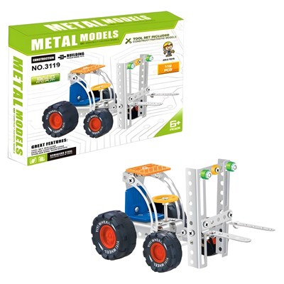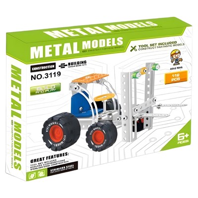ماشین ساختنی فلزی لیفتراک مدل 3119، یک کیت آموزشی و سرگرمکننده است که از 112 قطعه فلزی به همراه پیچگوشتی مخصوص تشکیل شده است. قطعات این مجموعه بهصورت پیچ و مهرهای به یکدیگر متصل میشوند.این محصول از فلز ضدزنگ باکیفیت ساخته شده و برای کودکان بیش از شش سال مناسب است. همچنین ضمن فراهمسازی سرگرمی و تجربهای لذتبخش، به تقویت خلاقیت، مهارتهای فنی، تمرکز و هماهنگی بین دست و چشم کودکان کمک شایانی میکند.