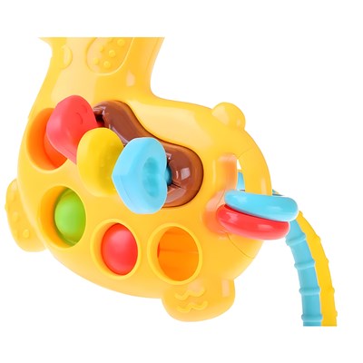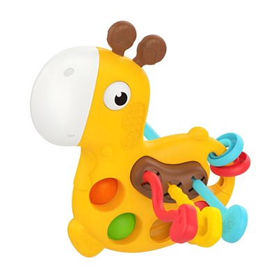 دندانگیر و دستورزی هانگر طرح زرافه مدل 0196 یک اسباببازی چندکاره و کاربردی برای کودکان بالای ۱۸ ماه است که با طراحی جذاب و ایمن، همزمان نقش دندانگیر و وسیله دستورزی را ایفا میکند. این محصول مجهز به دندانگیر سیلیکونی نرم بوده که به تسکین درد و التهاب لثه در دوران دنداندرآوردن کمک میکند و تجربهای آرامشبخش برای کودک فراهم میسازد. وجود بندکهای متحرک در طراحی این اسباببازی، باعث تقویت مهارتهای حسی، هماهنگی بین چشم و دست و افزایش تواناییهای حرکتی ظریف کودک میشود. ابعاد آن کاملاً متناسب با دستان کوچک کودک طراحی شده تا بهراحتی در دست گرفته شود.