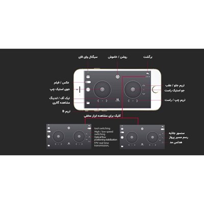 دوربین ۷۲۰ پیکسل HD میتواند فیلمهایی به شدت باکیفیت را ضبط کند و همینطور به صورت زنده برای کاربران روی گوشی های هوشمندشان ارسال نماید. شما این فیلم ها را به صورت مستقیم از طریق برنامه FPV میتوانید مشاهده نمایید. لینک دانلود این برنامه در قسمت پایین سایت تعبیه شده است. استفاده از تکنولوژی و همینطور فشار سنج و جریان نوری در این پرنده در ارائه تصاویر و ویدیوهای باکیفیتتر بسیار کارآمد است.