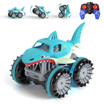 معرفی اسباب بازی ماشین کنترلی کوسه هیولای آب و خاک مدل 313-989 Amphibious Remote Control Car