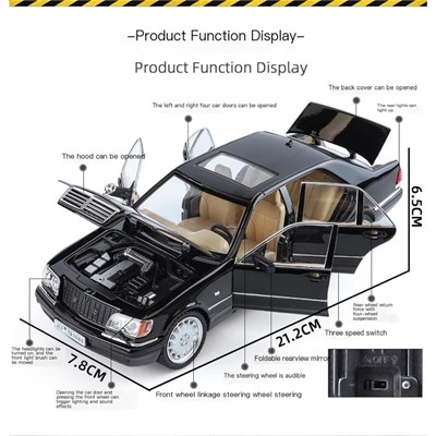 ویژگی های اسباب بازی ماشین فلزی مرسدس بنز مقیاس 1:24 مدل Mercedes benz w140 :