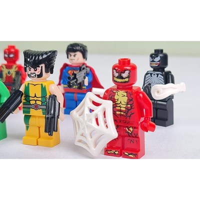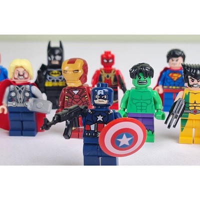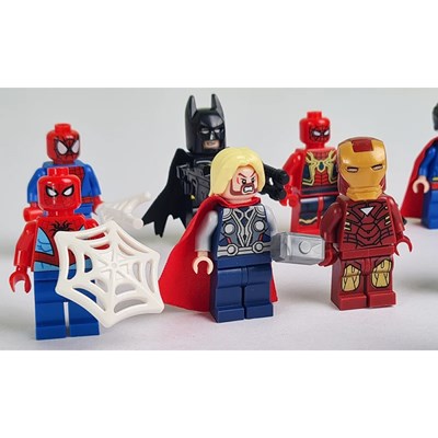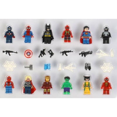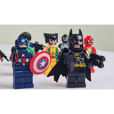 این مجموعه شامل 12 مینی فیگور از شخصیتهای محبوب مارول و DC است، از جمله آیرون من ، کاپیتان آمریکا ، اسپایدرمن ، بتمن و دیگر قهرمانان شناخته شده. هر فیگور به طول تقریبی 4 سانتیمتر طراحی شده و به همراه 15 اکسسوری متنوع ارائه میشود که تجربه بازی را کاملتر میکند.