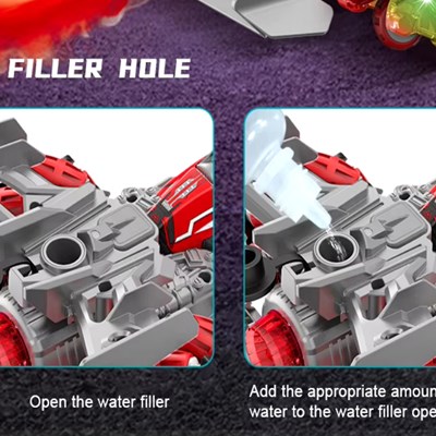 ماشین کنترلی دودزا ۳۶۰ (چرخ کپسولی) دارای ویژگیهای جذابی است. با پخش صداهای واقعی ماشینهای ورزشی، فراگیری احساس حضور در مسابقههای واقعی را فراهم میکند. علاوه بر این، با ریختن آب داخل ماشین و فشار دادن دکمه نور/اسپری، بخار پاشیده و تجربهای شگفتانگیز را ایجاد میکند. ماشین کنترلی دودزا ۳۶۰ (چرخ کپسولی) مجهز به یک کنترل با فرکانس ۲.۴ گیگاهرتزیبرای هدایت دقیق ماشین است. موتور قدرتمند این دستگاه تجربهی مسابقه و دریفت را به یک سطح بالاتر میبرد.