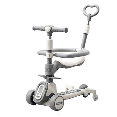بدنه این وسیله از تلفیق پلاستیک مرغوب و آلومینیوم سبک ساخته شده است. دسته آن قابلیت تاشوندگی دارد تا سهولت در حمل و نقل و نگهداری را میسر سازد. همچنین، امکان تنظیم ارتفاع دسته مطابق با قد کودک پیشبینی شده است. صندلی راحت و قابل تفکیک این اسکوتر، امکان استفاده در حالتهای گوناگون را فراهم مینماید.