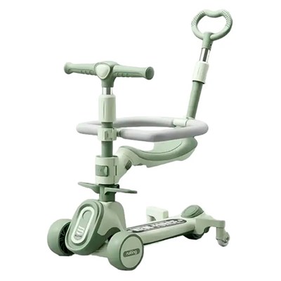 بدنه این وسیله از تلفیق پلاستیک مرغوب و آلومینیوم سبک ساخته شده است. دسته آن قابلیت تاشوندگی دارد تا سهولت در حمل و نقل و نگهداری را میسر سازد. همچنین، امکان تنظیم ارتفاع دسته مطابق با قد کودک پیشبینی شده است. صندلی راحت و قابل تفکیک این اسکوتر، امکان استفاده در حالتهای گوناگون را فراهم مینماید.
