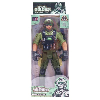 این اکشن فیگور مفصلی سرباز ، با مقیاس 1:6 و ارتفاع تقریبی 30 سانتیمتر، بر اساس نمونه واقعی سربازان نیروهای ویژه طراحی و تولید شده است. فیگور مذکور از قابلیت مفصلبندی کامل در نواحی زانو، ران، مچ دست، آرنج و شانه بهرهمند است که امکان اجرای حرکات و ژستهای متنوع و واقعگرایانه را فراهم میآورد.