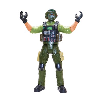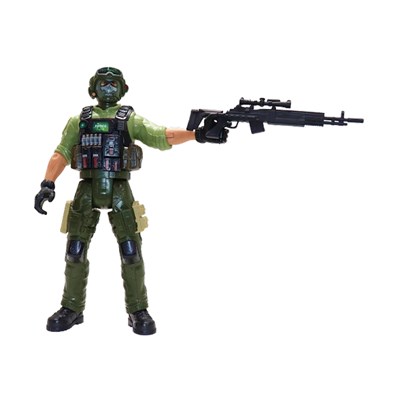 این محصول به همراه یک قبضه اسلحه نظامی بزرگ و مجموعه کاملی از تجهیزات جانبی جنگی عرضه میگردد. ساختار این فیگور از پلاستیک مقاوم ABS صورت گرفته است که دوام و استحکام آن را تضمین مینماید. این اسباببازی جذاب و منحصر به فرد، برای رده سنی کودکان بالای 3 سال توصیه میشود.