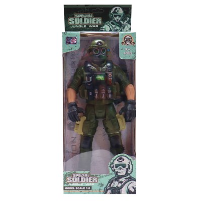 این اکشن فیگور مفصلی سرباز ، با مقیاس 1:6 و ارتفاع تقریبی 30 سانتیمتر، بر اساس نمونه واقعی سربازان نیروهای ضربت طراحی و تولید شده است. فیگور مذکور از قابلیت مفصلبندی کامل در نواحی زانو، ران، مچ دست، آرنج و شانه بهرهمند است که امکان اجرای حرکات و ژستهای متنوع و واقعگرایانه را فراهم میآورد.