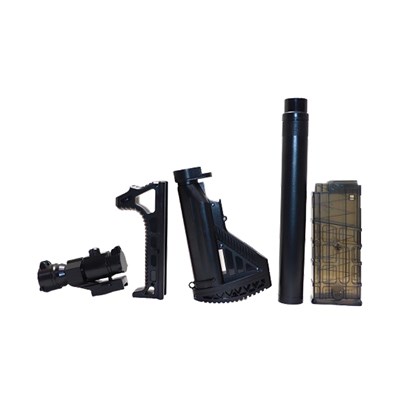 - دارای قنداق اسلحه، بند، خشاب، 8 پوکه، 20 تیر اسفنجی، دوربین نصبشدنی، لوله صداخفهکن و دسته جلو