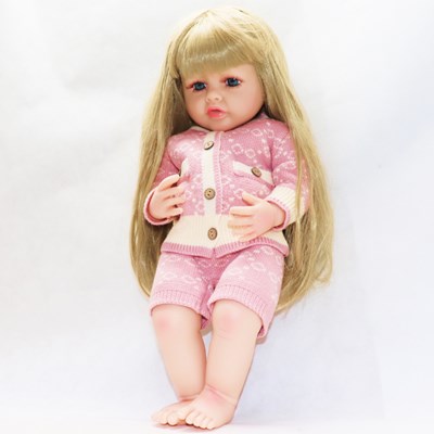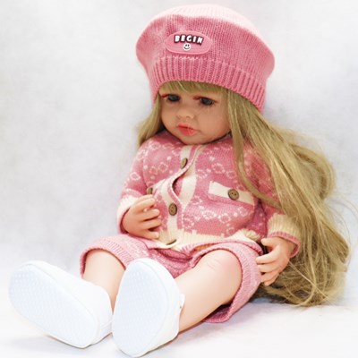 معرفی عروسک سیلیکونی دختر بچه 50 سانتی سخنگو با لباس زمستانی