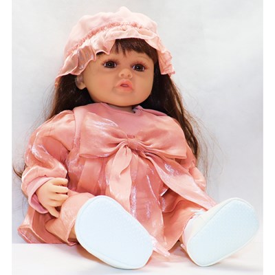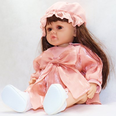 معرفی عروسک سیلیکونی دختر بچه 50 سانتی سخنگو با کلاه صورتی