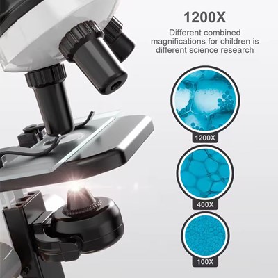 میکروسکوپ آموزشی مجهز به سیستم روشنایی با دامنه بزرگنمایی 100 تا 1200 برابر، انتخابی ایده‌آل جهت آموزش و تسهیل اکتشافات علمی و زیست‌شناسی برای گروه سنی کودک و نوجوان است.