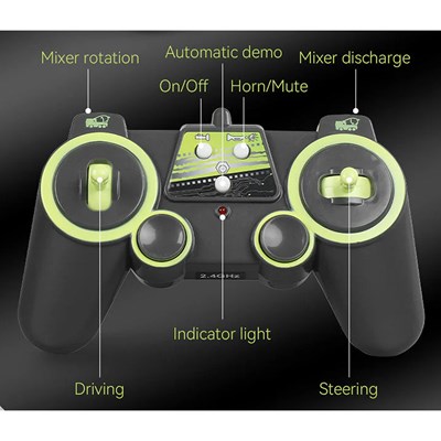 این مدل مجهز به کنترل کامل در هشت کانال بوده و امکان هدایت حرکت، چرخش میکسر و فرآیند تخلیه را فراهم میسازد. شبیهسازی حس رانندگی واقعی از طریق چراغهای LED (جلو، عقب و سقف) و فعالسازی صدای استارت و کارکرد موتور حین حرکت، محقق شده است.