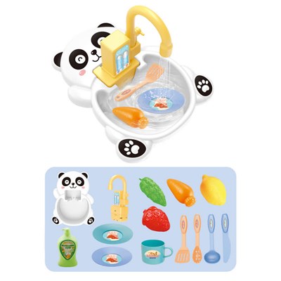 این مجموعه سینک ظرفشویی اسباببازی با طراحی جذاب «پاندا» برای کودکان، میتواند ساعتها سرگرمی فراهم آورد. آب از طریق شیر تعبیهشده خارج شده و قابلیت بازچرخانی و سرازیر شدن مجدد به درون حوضچه سینک را دارا میباشد. محصول مذکور پمپدار بوده و عملکرد آن مبتنی بر باتری است؛ شیر آب جهت کارکرد نیازمند دو عدد باتری قلمی (سایز AA) است که در بستهبندی موجود نمیباشد.این مجموعه شامل 14 قطعه مجزا و سرگرمکننده است که علاوه بر سینک و شیر آب، اقلام زیر را در بر میگیرد: دو عدد بشقاب، یک عدد چنگال، یک عدد کارد، یک عدد کفگیر، یک عدد ملاقه، یک عدد لیوان، یک عدد ظرف مایع ظرفشویی، به علاوه اقلام خوراکی اسباببازی شامل یک عدد هویج، یک عدد توت فرنگی، یک عدد بلال و یک عدد لیمو. این محصول از پلاستیک بسیار مرغوب و مقاوم ساخته شده و برای کودکان بالای 3 سال مناسب است.
