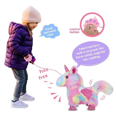 عروسک اسب پونی کنترلی مدل 933135 یک اسباببازی جذاب و باکیفیت برای کودکان بوده که با حرکتهای طبیعی و پخش صدای شیهه مشابه اسب واقعی، تجربهای واقعی و لذتبخش از بازی را فراهم میکند.این عروسک قادر است راه برود، هنگام حرکت دم خود را تکان دهد و همراه با پخش موزیک، حرکات رقص انجام دهد.