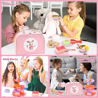 - شامل: چمدان، 1 سینی، 4 بشقاب، 4 نعلبکی، 4 فنجان، 1 قوری، 1 تل خرگوشی، 2 تی بگ، 2 لیمو، 18 کیک و شیرینی، 1 انبر کیک، 1 سینی طبقاتی کیک، 1 کاردک کیک، 4 قاشق چای خوری